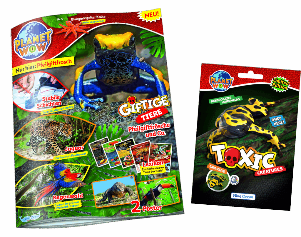 Tu découvriras des faits passionnants sur les animaux des collections PLANET WOW dans chaque magazine PLANET WOW. Tu apprendras tout sur leurs caractéristiques fascinantes, tu voyageras avec eux autour du monde et tu rencontreras d'autres créatures extraordinaires. En plus, il y a plein d'énigmes et une bonne dose de plaisir pour toi. Chaque numéro contient un supplément passionnant de la série PLANET WOW, en rapport avec le thème choisi. Traduit avec DeepL.com (version gratuite)